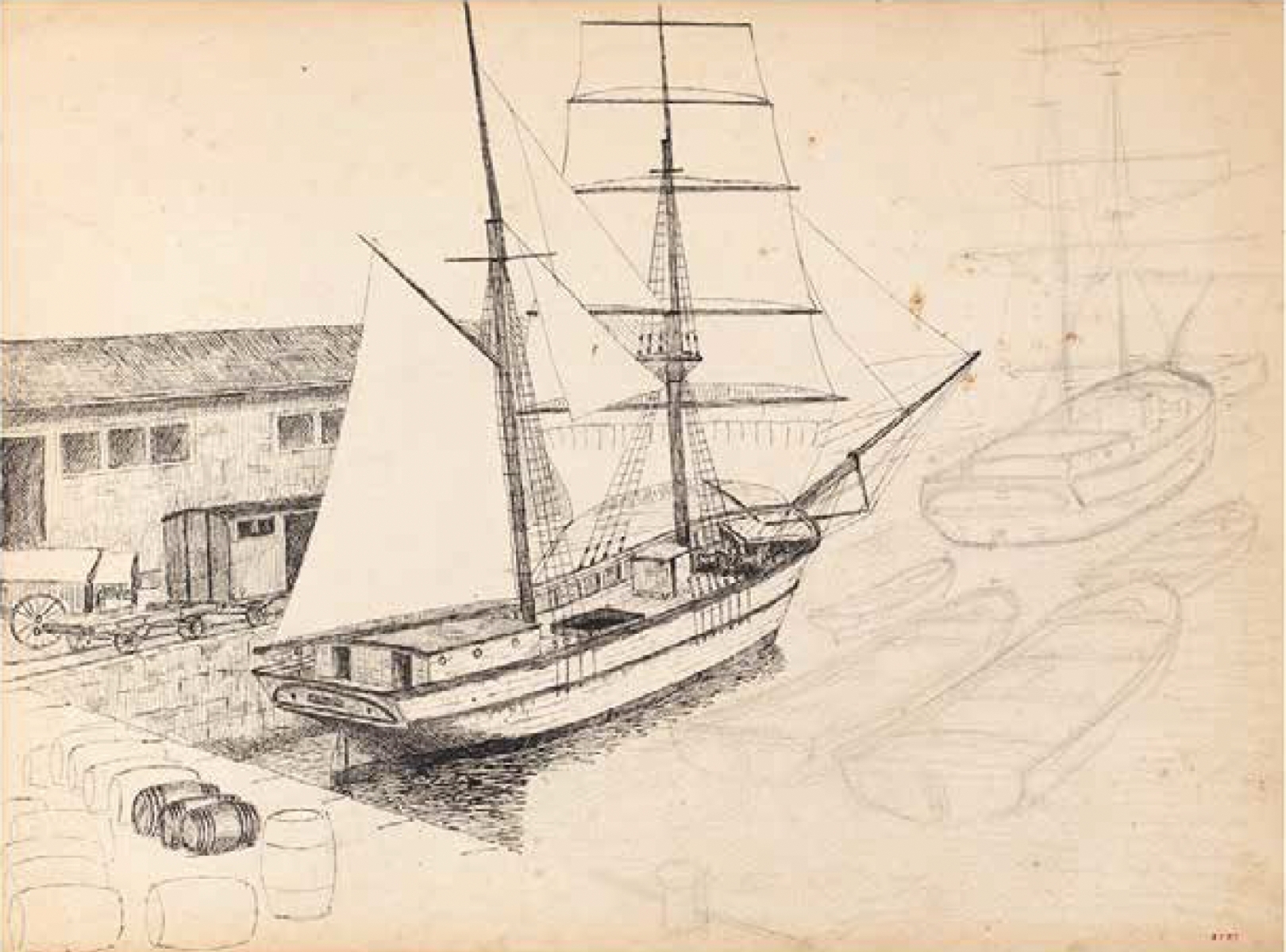 Fent honor al pare pintor, Emerencià no només es va servir del llapis per escriure, sinó també per dibuixar. La informació que el sitgetà va deixar per a la posteritat es complementa amb una gran quantitat de dibuixos i retrats de vaixells elaborats per ell mateix, que no deixava escapar cap mot ni tampoc cap traç. Amb pretensions més científiques i etnològiques que no pas artístiques, Emerencià Roig va convertir el dibuix en un artefacte més per captar l’essència del que tenia al davant: d’aquesta manera, cada vegada que anotava alguna explicació, també deixava anar una petita obra mestra. Elaborats principalment amb llapis o carbó, de vegades amb colors, els seus dibuixos mostren amb precisió com eren els darrers velers catalans, alhora que en fan palès el talent artístic. Conscient de les dificultats per reproduir mentalment un vaixell i de les limitacions de la fotografia per captar els detalls, el dibuix li permetia controlar en quina part de l’anatomia d’una embarcació naval fer èmfasi. Joan Roig no volia que els seus fills fossin pintors, però el talent no es tria i la vocació no sempre es pot esquivar.