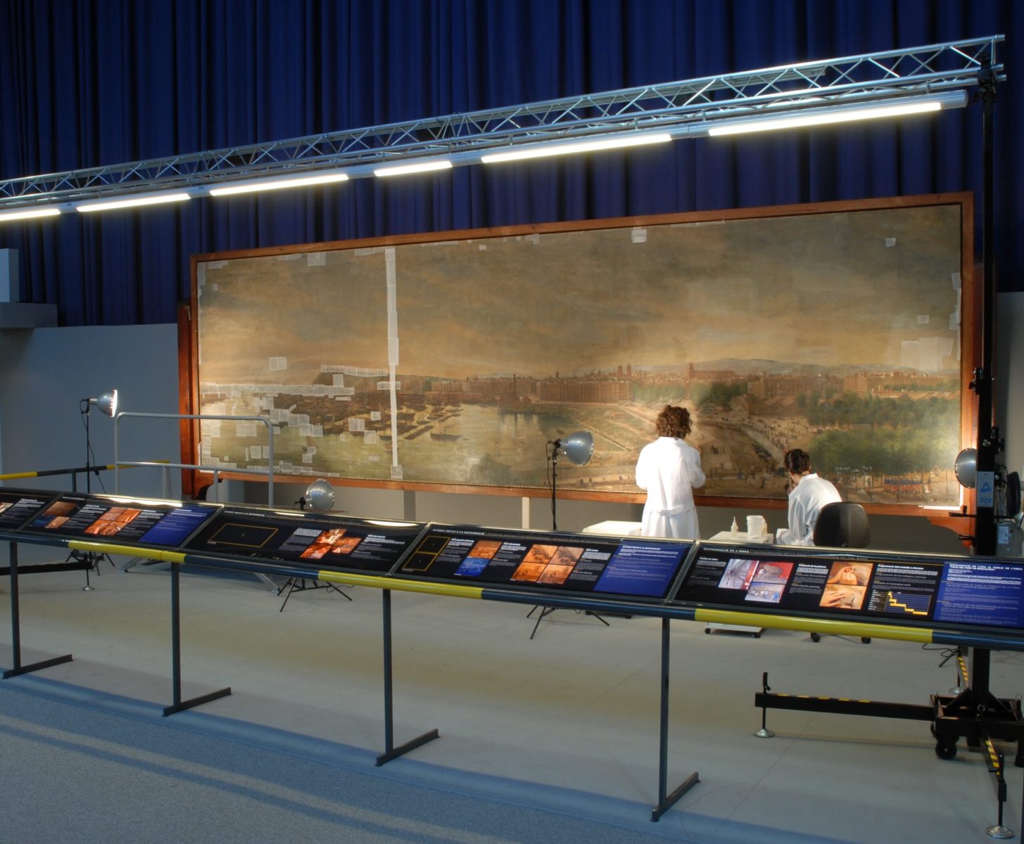 Tenint en compte les seves dimensions, es va condicionar un espai dins les sales del Museu on els visitants poguessin veure la restauració en directe. Per facilitar la comprensió de la feina que s’estava fent, es van posar uns plafons amb informació de l’obra i de l’autor, i uns altres amb imatges i textos on s’explicaven les diferents fases del procés de restauració, així com les anàlisi i els estudis que s’estaven duent a terme.