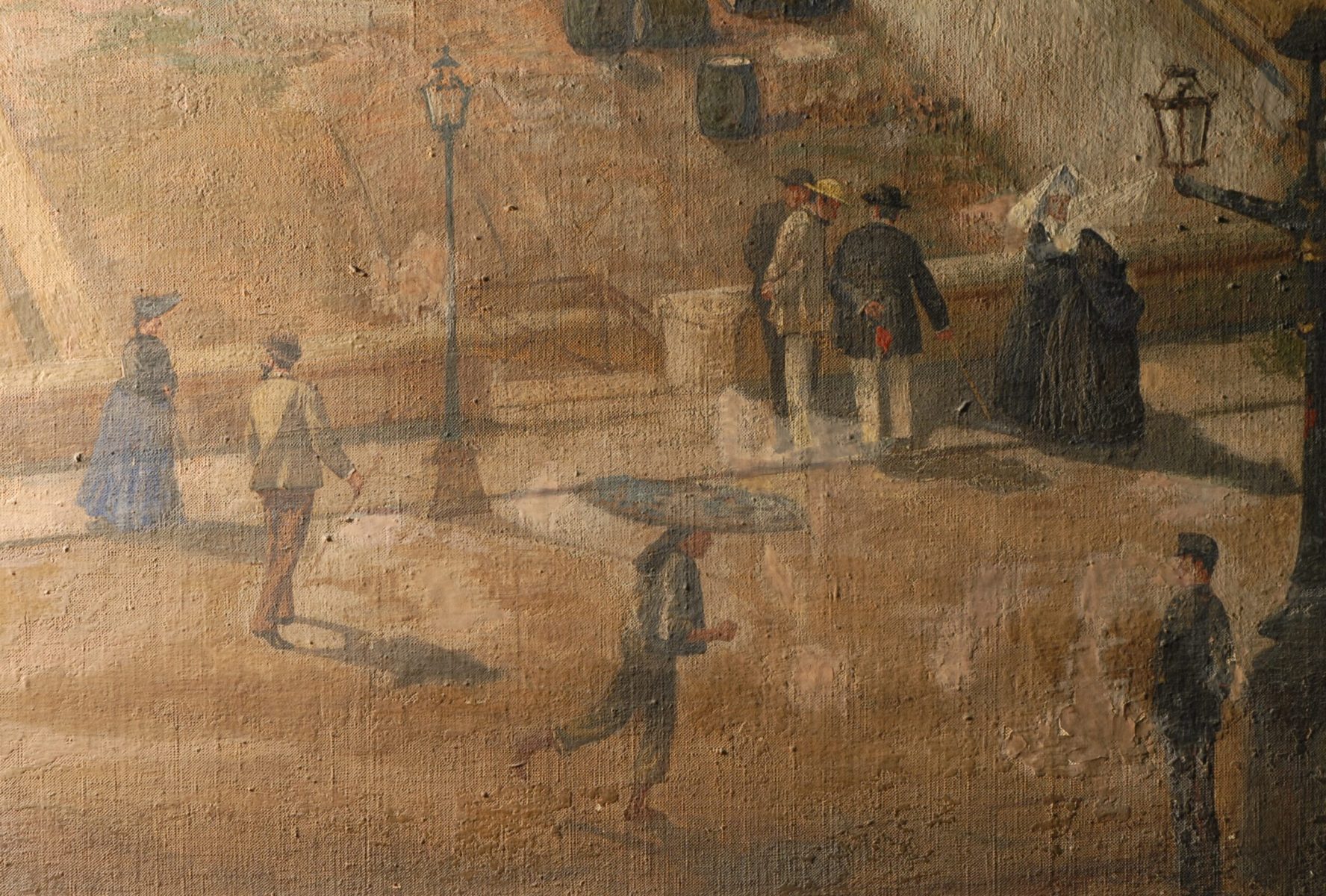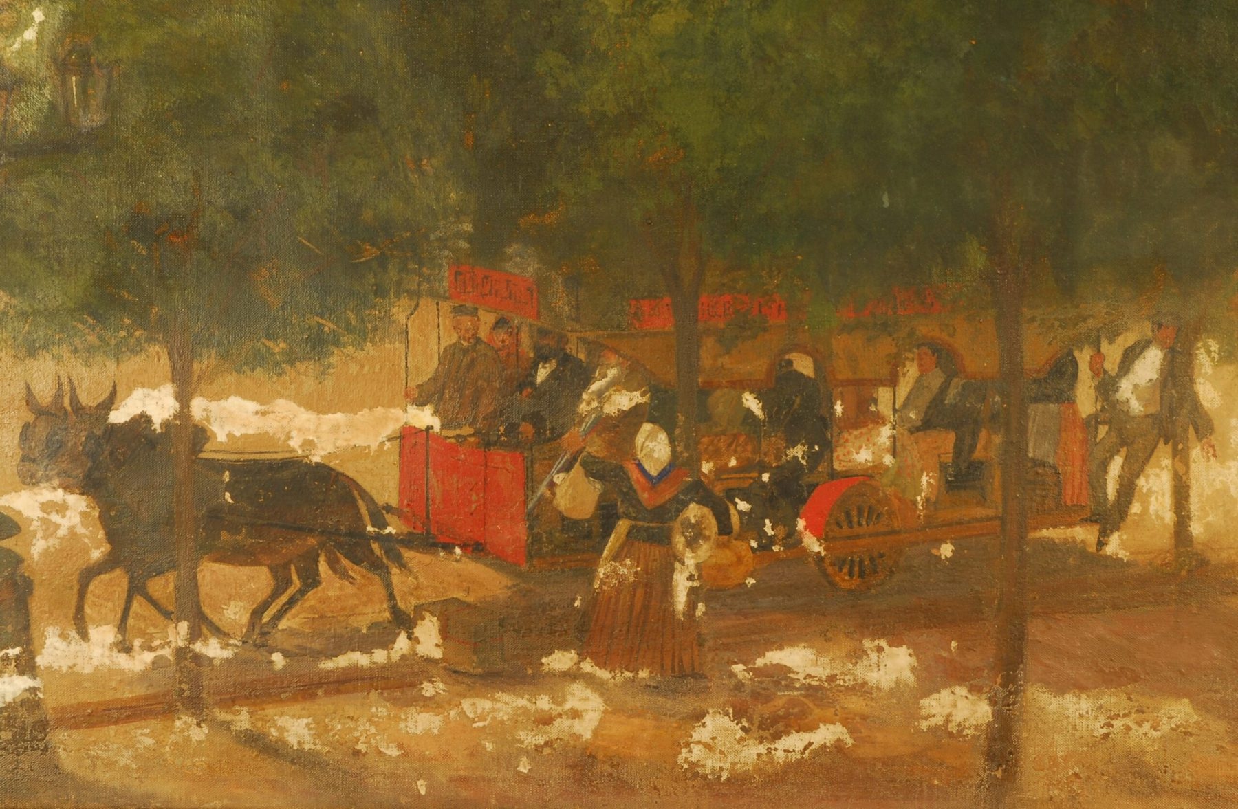L’any 1914 el Cafè Novedades va ser enderrocat, però la seva família va guardar aquesta pintura. Anys després la seva filla en va fer donació, d’aquesta i altres obres del seu pare, a l’Institut del Teatre.