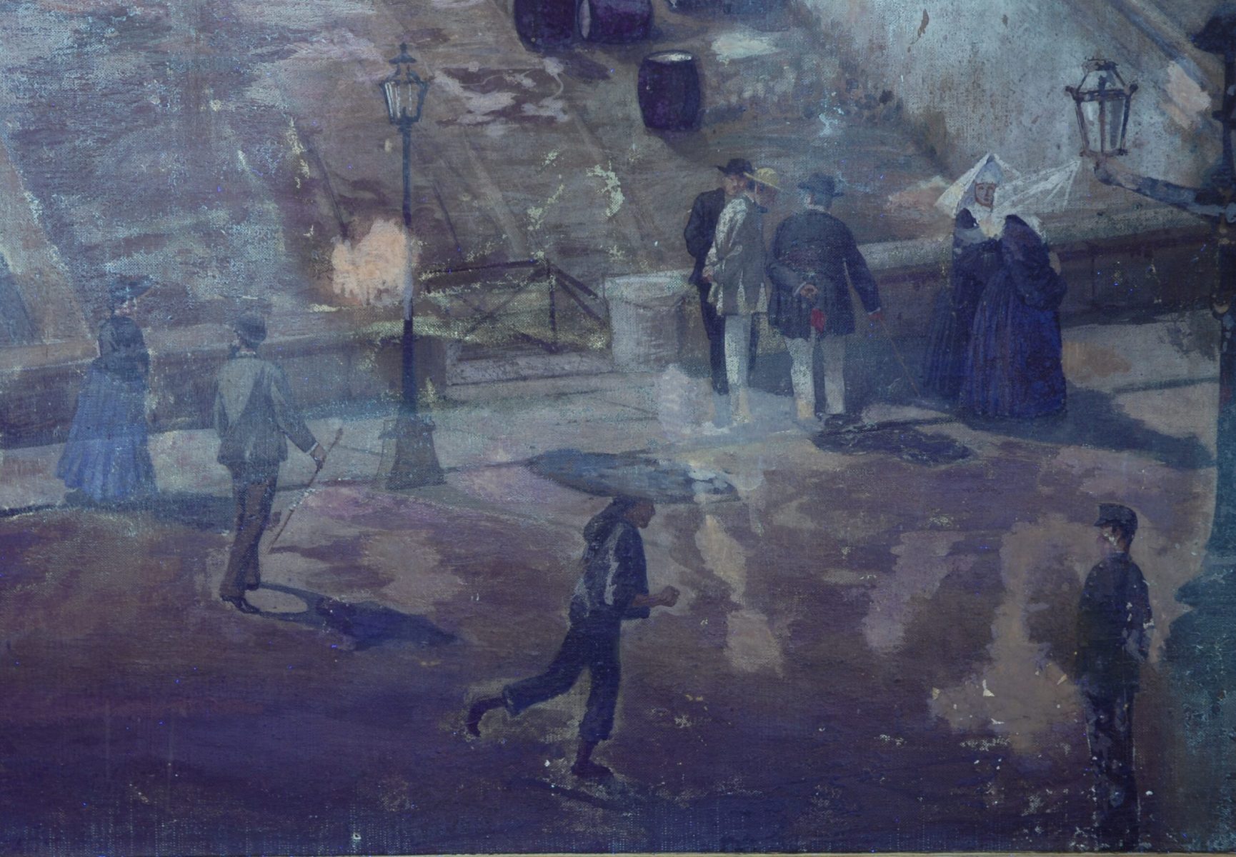 Com consta al registre d’entrades del Museu Marítim, el 10 d’octubre del 1941, procedent de l’Institut del Teatre, es va dipositar al Museu una tela de 8,22 x 2,17 m descrita com a reproducció d’una vista del port de Barcelona i atribuïda a Francesc Soler i Rovirosa.